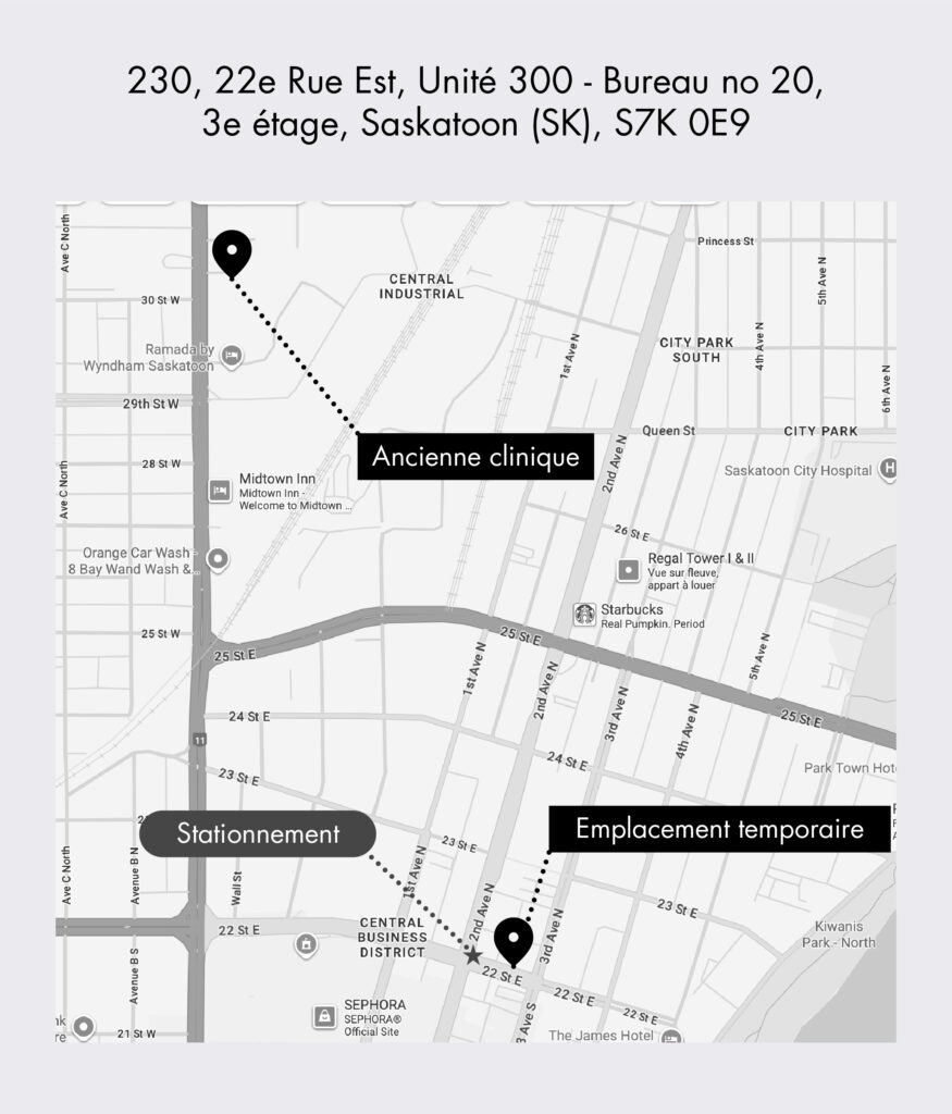 Adresse: 230 22nd St East, Unit 300 – Suite #20, 3e étage, Saskatoon, SK S7K 0E9